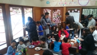 入所式の後には各家庭から料理を持ち寄りで歓迎会。